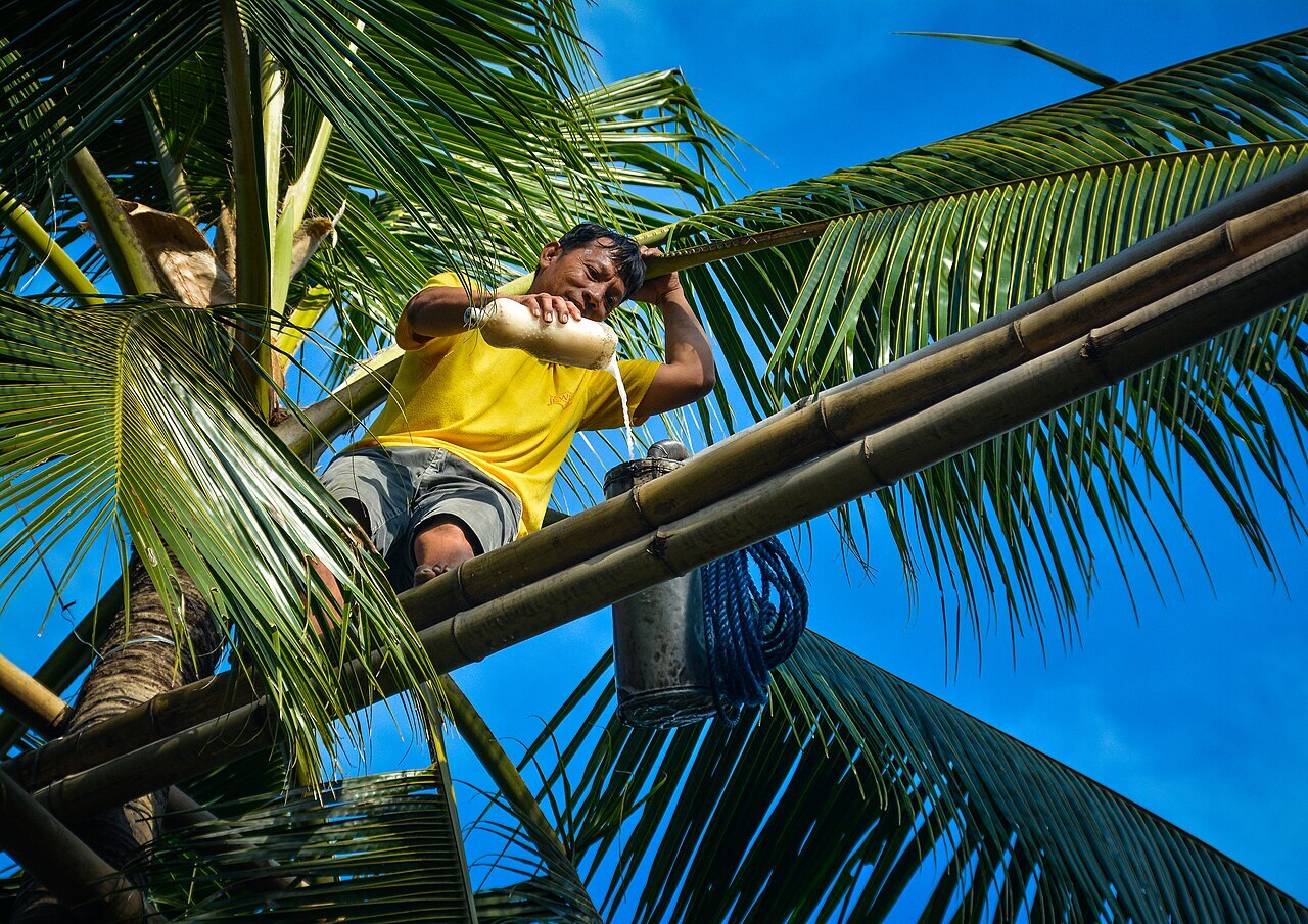 В Юго-Восточной Азии сок кокосовой пальмы активно применяют для приготовления вина (Toddy). Сок собирают утром (он начинает бродить очень быстро из-за высокого содержания натуральных сахаров и диких дрожжей). Брожение происходит естественным образом в течение нескольких часов. Результат — слабоалкогольный (4-8% об.), слегка шипучий, сладковато-кислый или терпковатый напиток с молочным или кремовым оттенком. Употребляется в основном свежим в регионах произрастания (Южная и Юго-Восточная Азия, Океания, Африка, тропическая Америка).